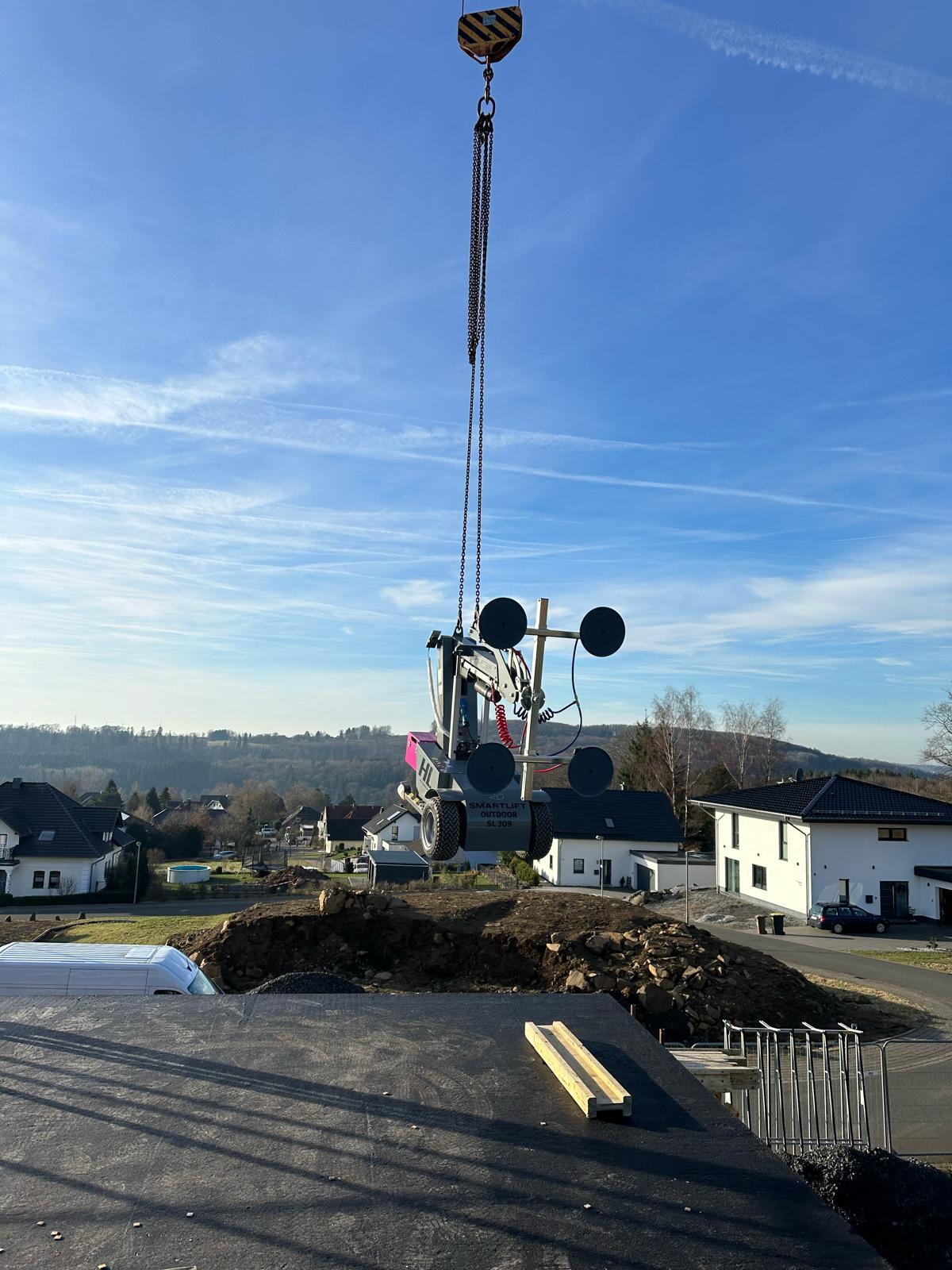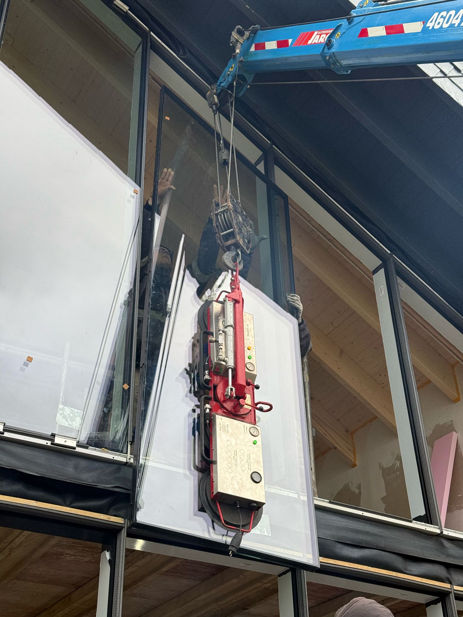 Mit dieser Krantechnik lassen sich Glas-, Stahl- und Holzelemente, Maschinenbauteile, Anlagenkomponenten oder schwere Platten zuverlässig heben und montieren. Ergänzend ermöglichen Traversen, Anschlagmittel und Vakuumtechnik eine perfekte Lastverteilung und sichere Aufnahme empfindlicher Bauteile.